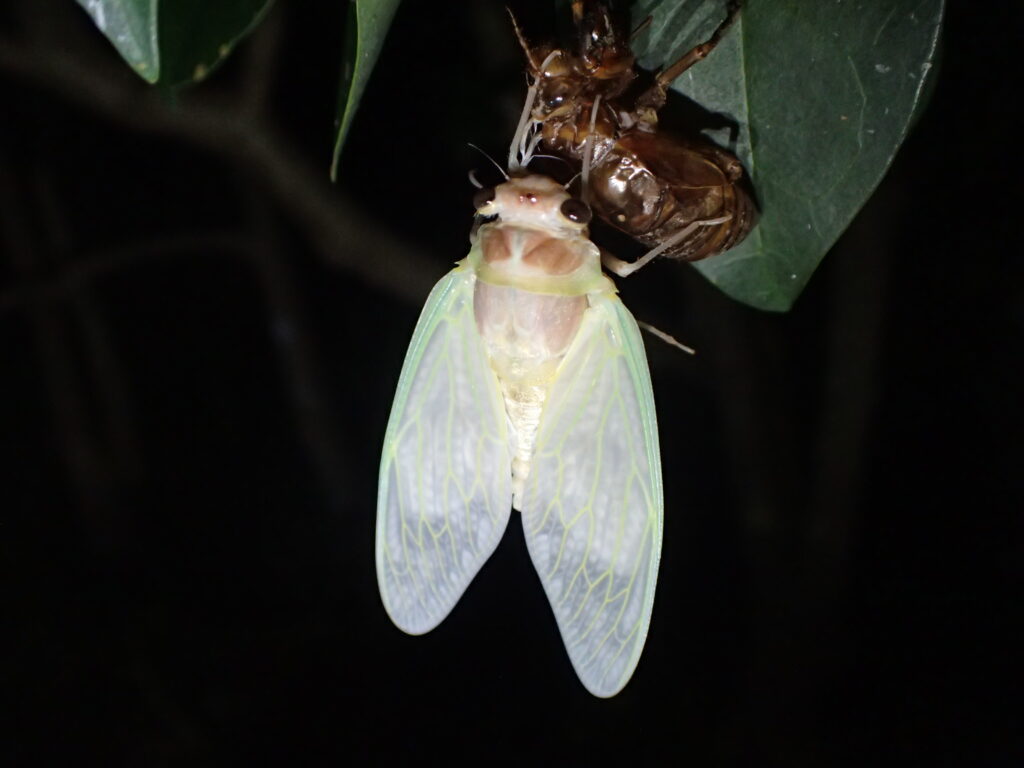 今月は明石公園に夕方に集合し、夜の公園でセミの羽化の観察を行いました。まだ明るい夕方に明石公園を歩くと、もうセミの幼虫が土の中から歩いて出てきていました。夕食を食べてから懐中電灯を持って木を照らしながら羽化しているセミを探しました。たくさんのセミの羽化を観察できましたね。セミ以外にもカブトムシを見つけたグループもいました。夜の公園は普段見れない生き物がいろいろ見れましたね。